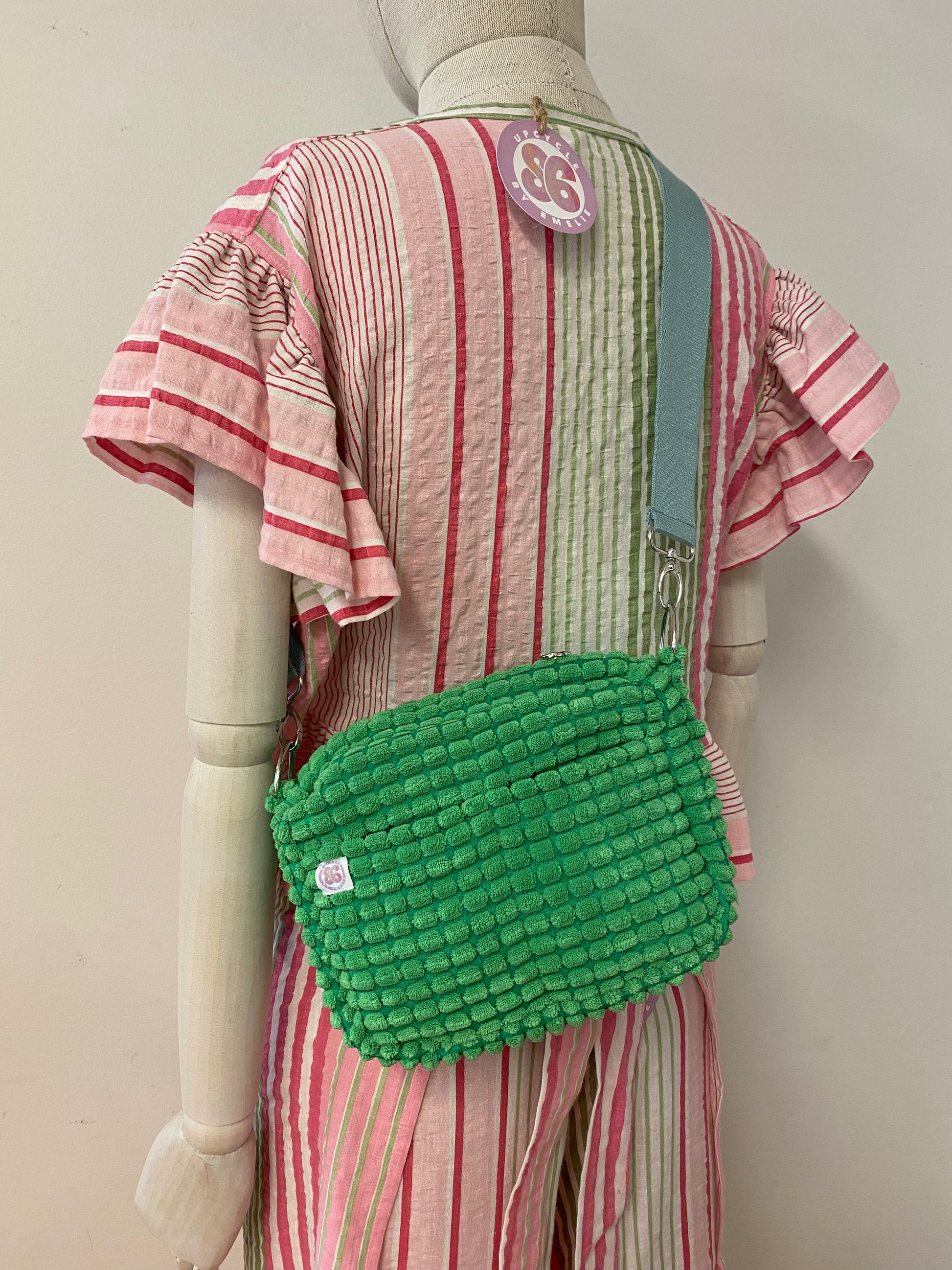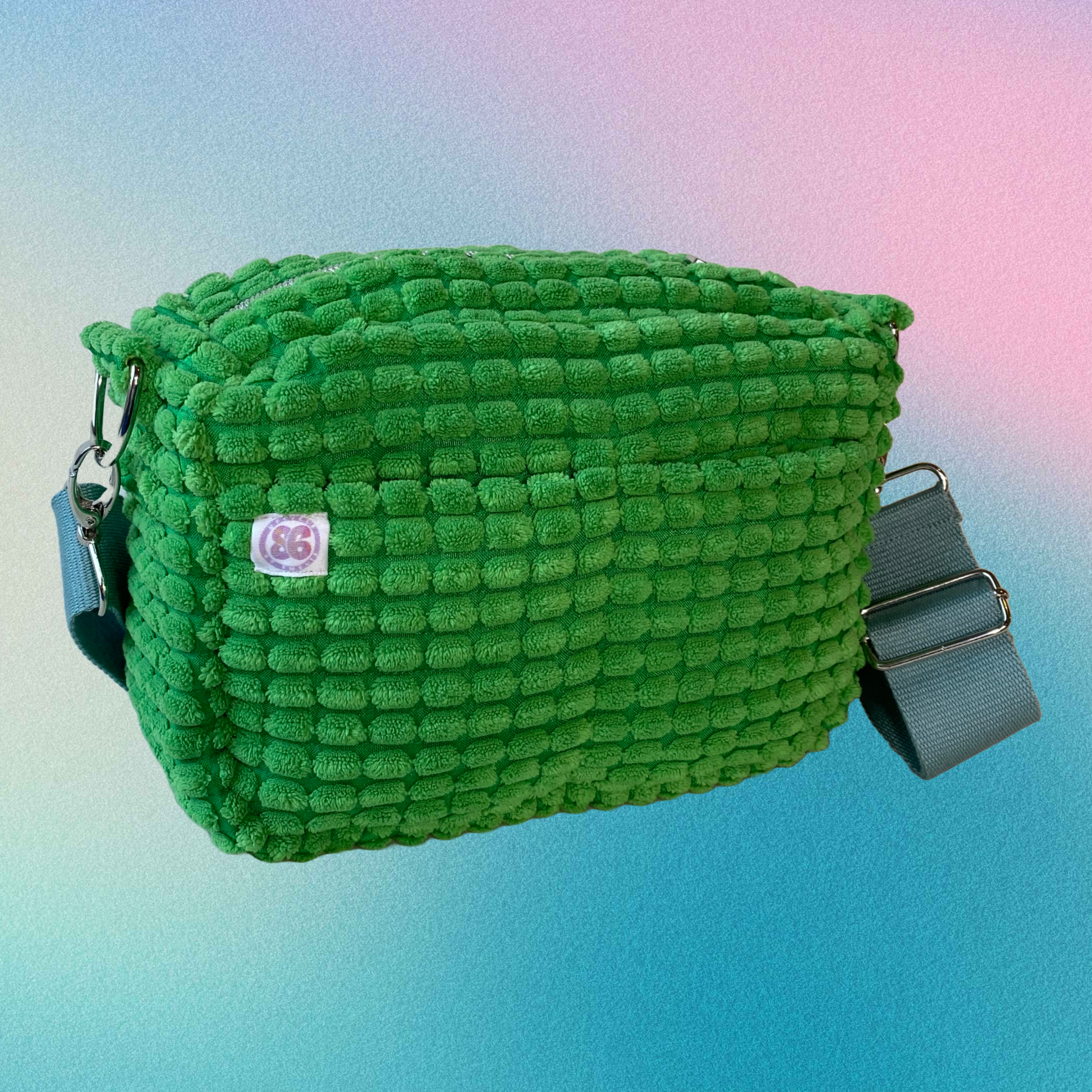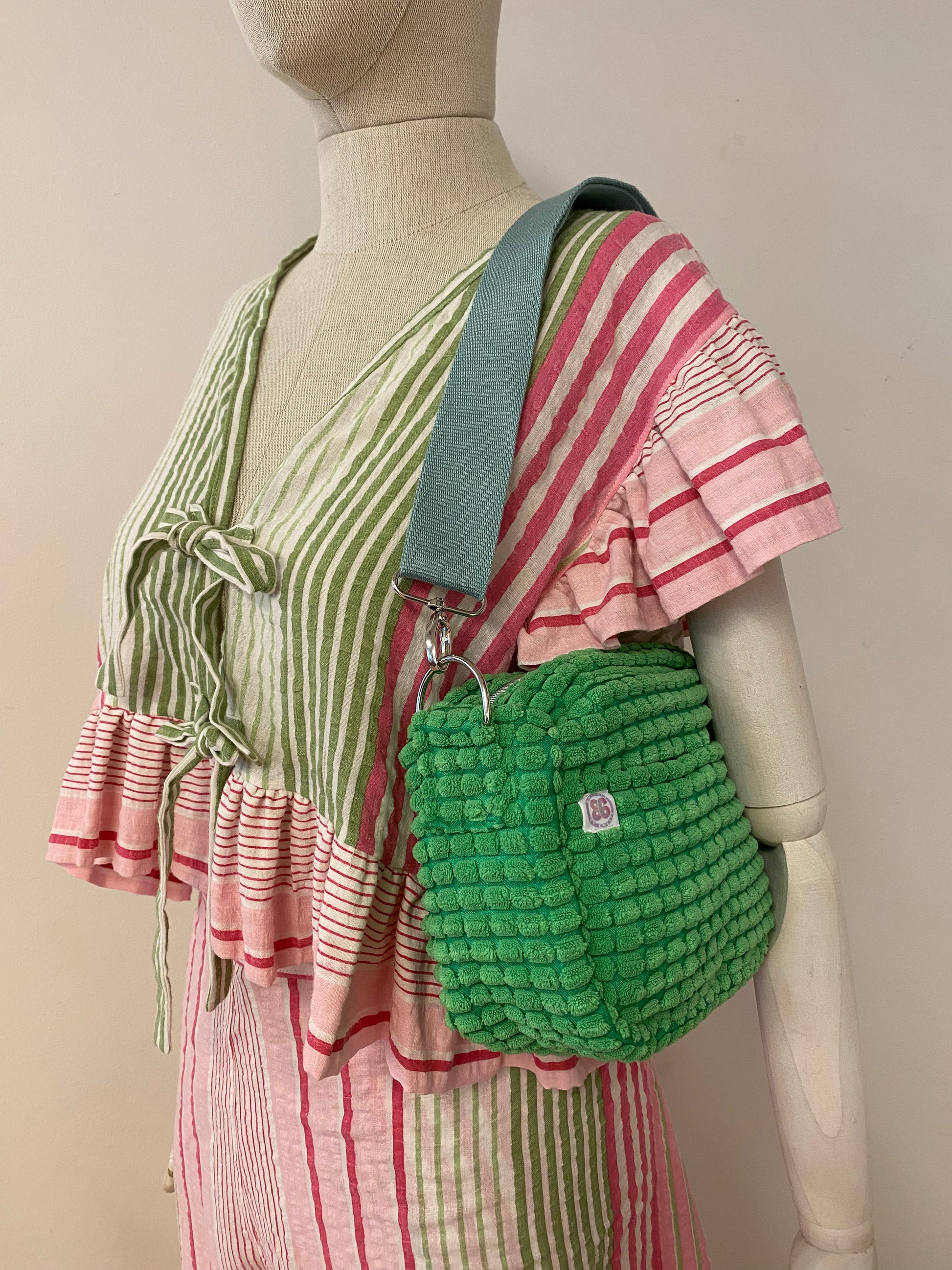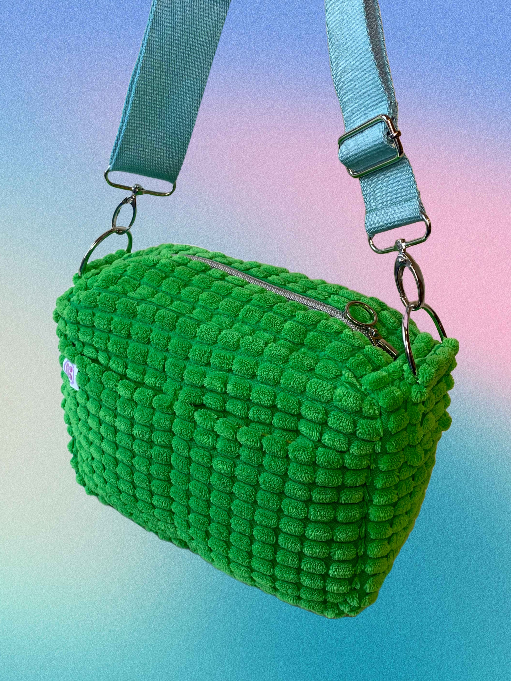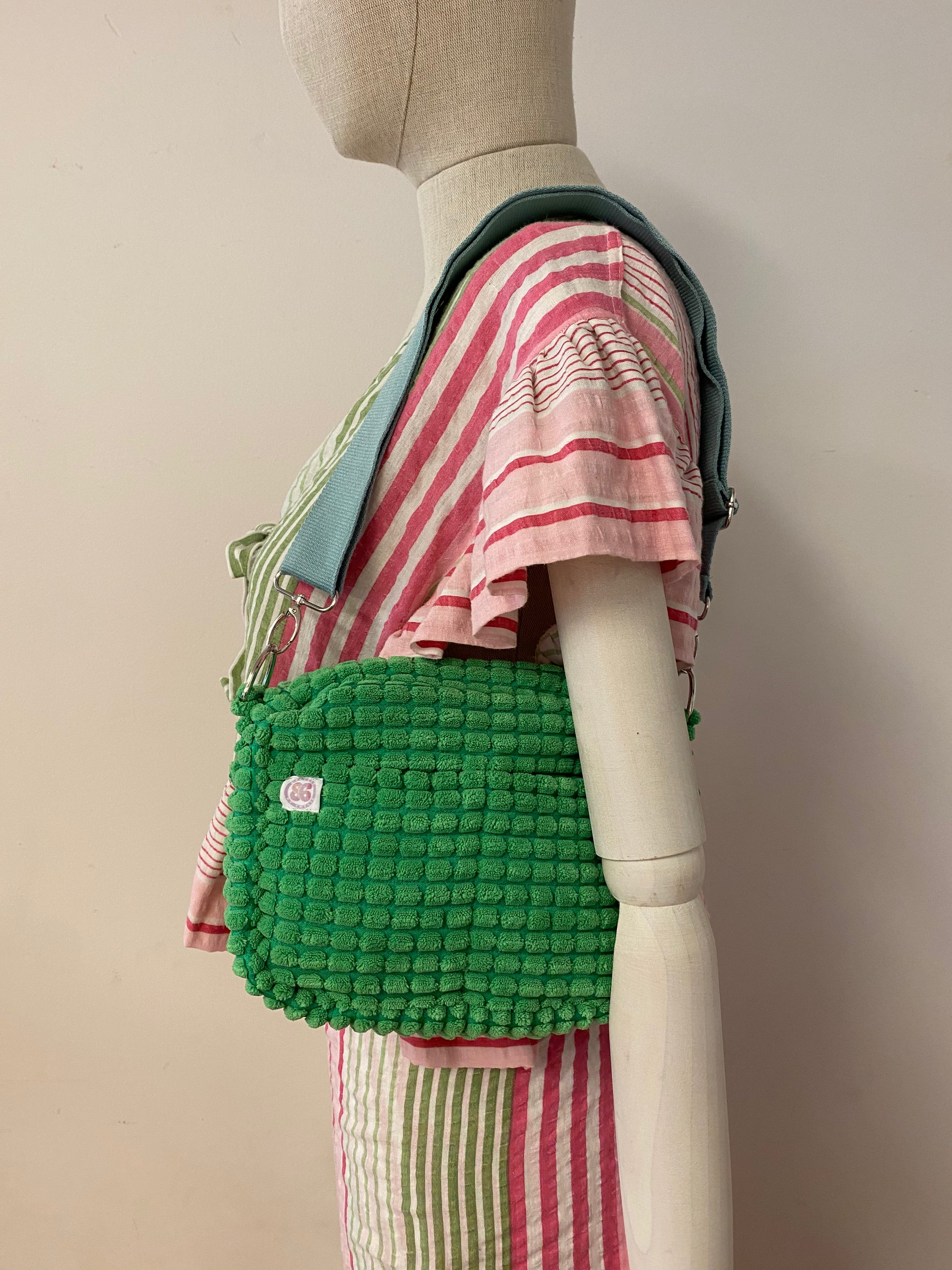 Green "fluffy" shoulderstrap bag with adjustable strap
