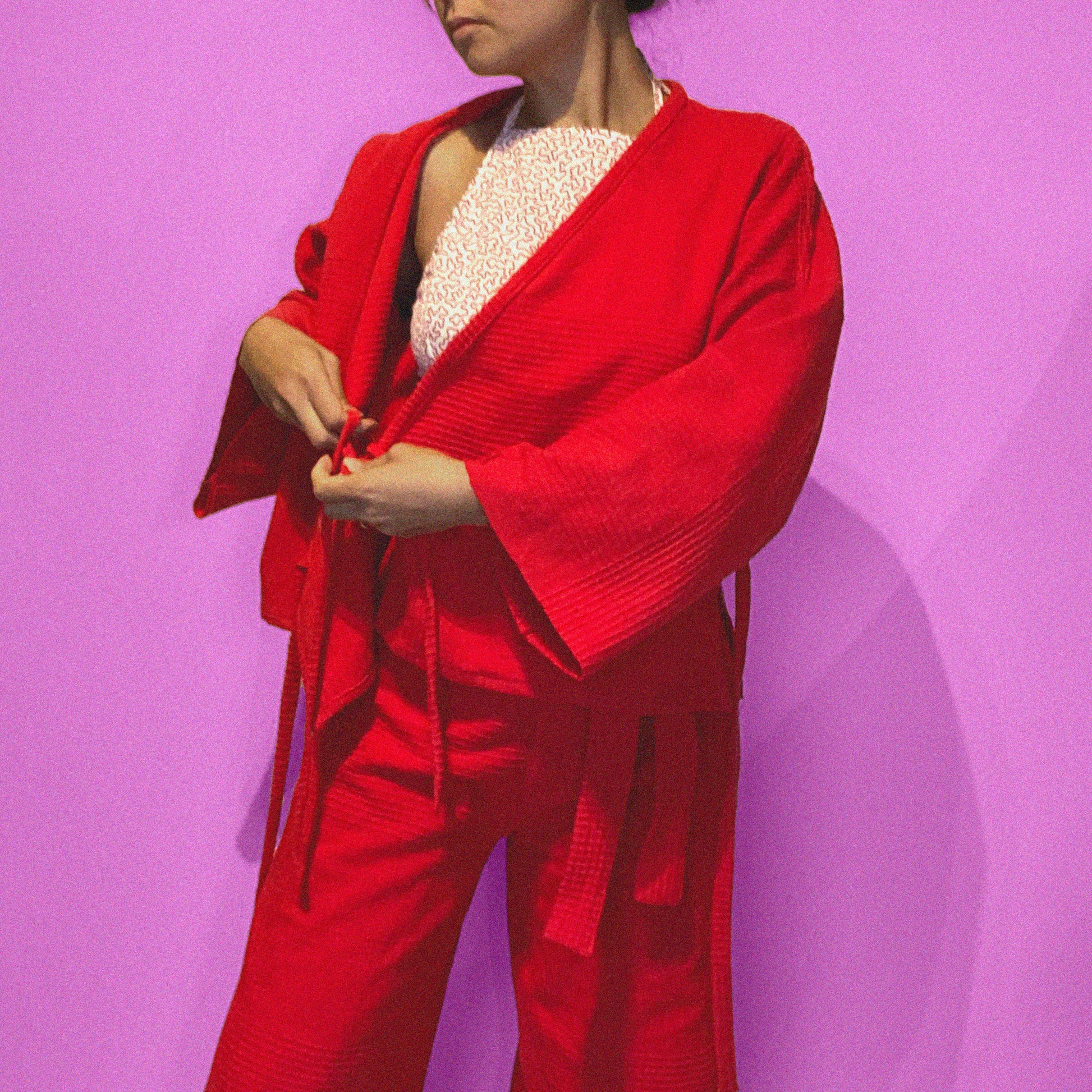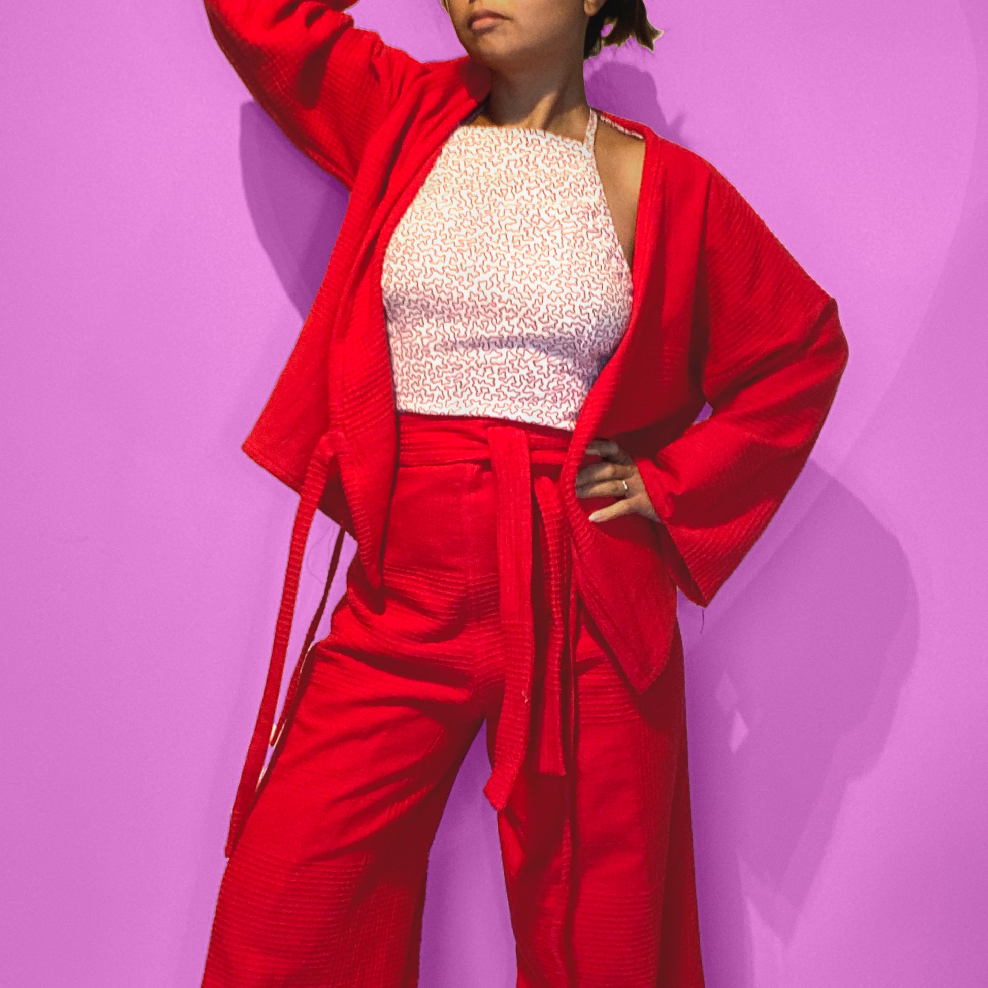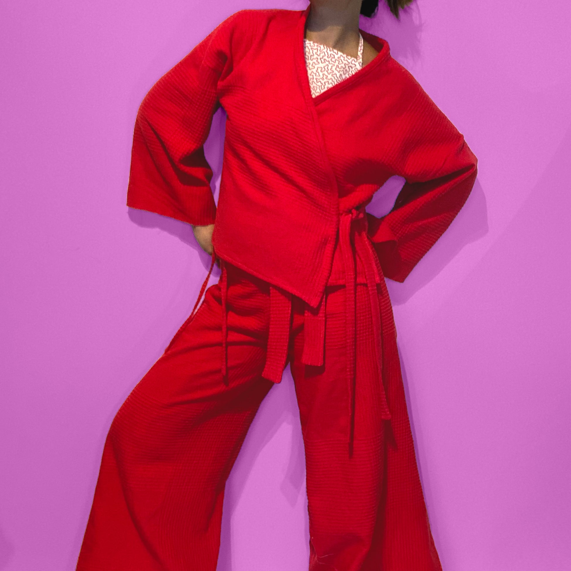Red wrap pants and wrap top